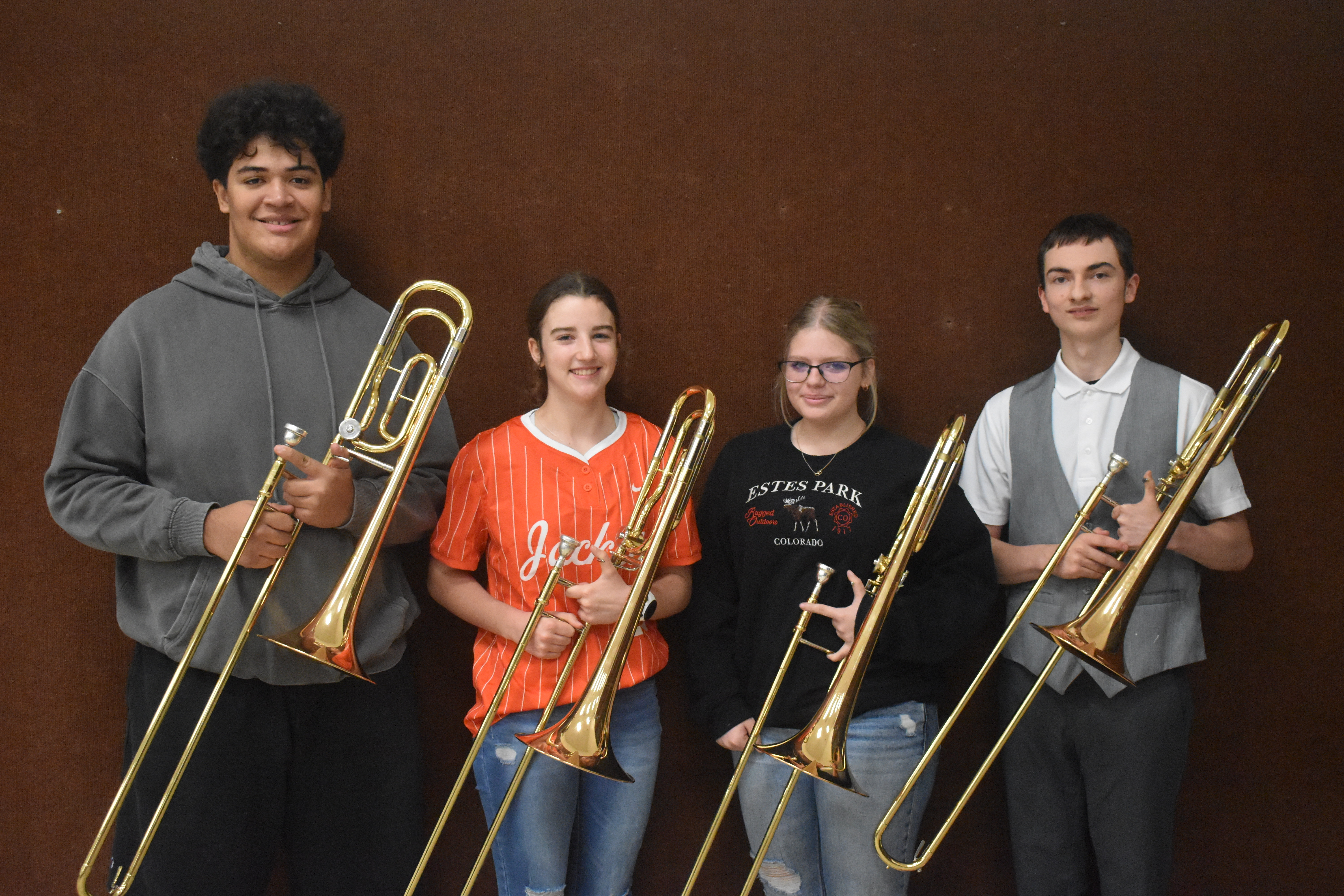 In addition, the trombone quartet earned a 1st Division rating on their Class 1 quartet performance. Because of their superior rating, they have qualified for the Texas State Solo & Ensemble Contest, which will be held in Austin this May. Members of the quartet include Brycen Richerson-Powell, Libby Simms, Jaedyn O'Dell, and Zander Campbell.